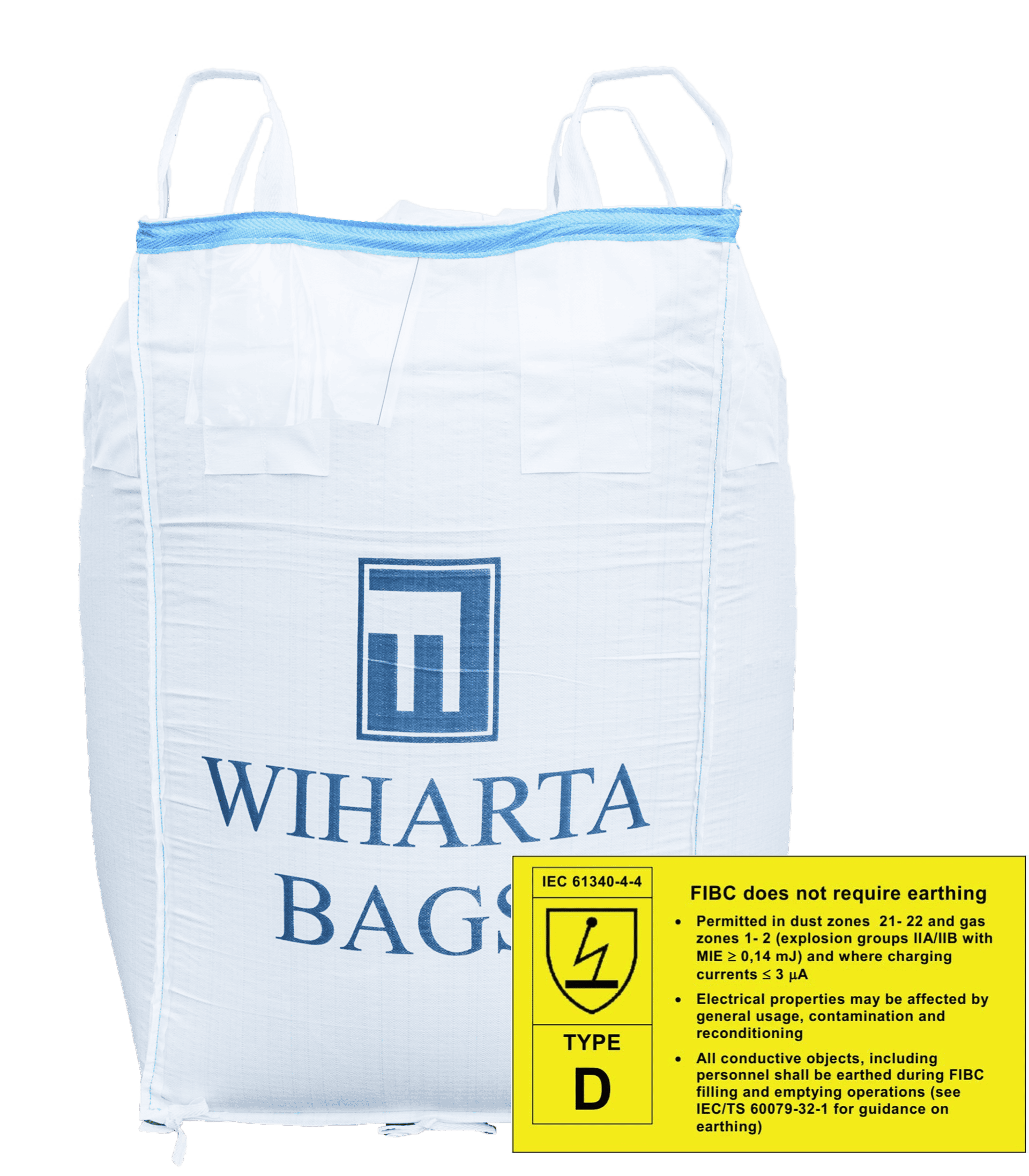 “Our FIBC bags, marketed under the Wicon® brand, are designed to meet a wide range of industrial needs and are available in four distinct types: Type A, B, C, and D. Each type is classified based on its electrostatic properties and grounding requirements, ensuring safe and efficient handling for various applications.”
